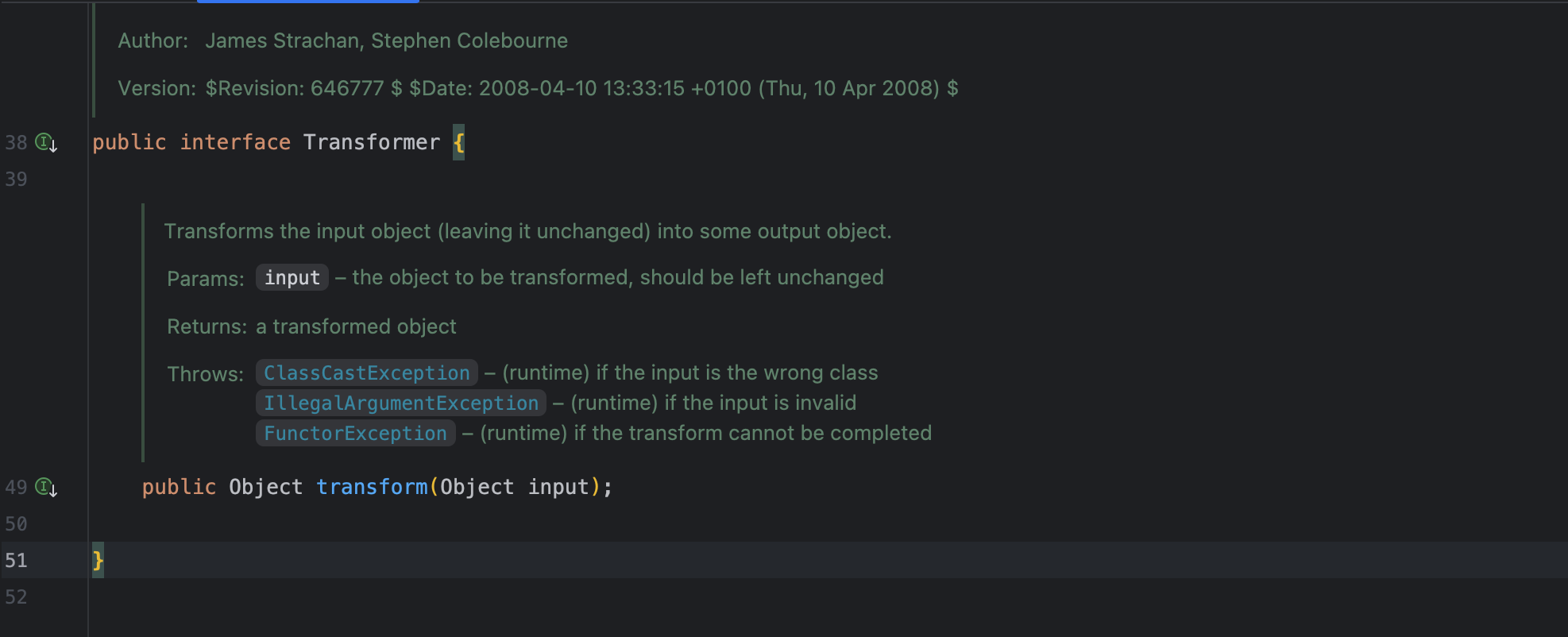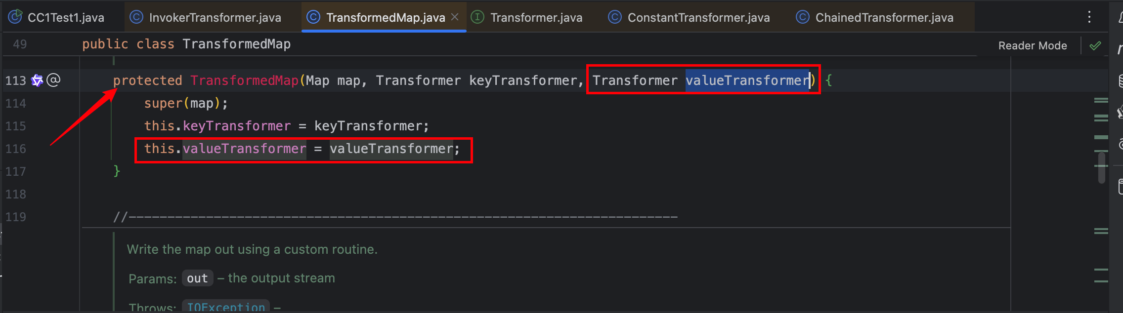 CC1 链中的源头是 org.apache.commons.collections.Transformer 接口,这个接口有一个 transform 方法。