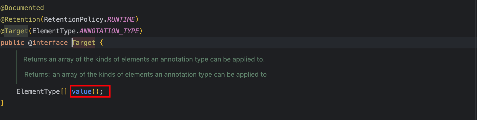 知道上述代码的逻辑,因此我们就需要将代码进行修改,找到一个带有成员变量的注解,这里使用 Target 注解。