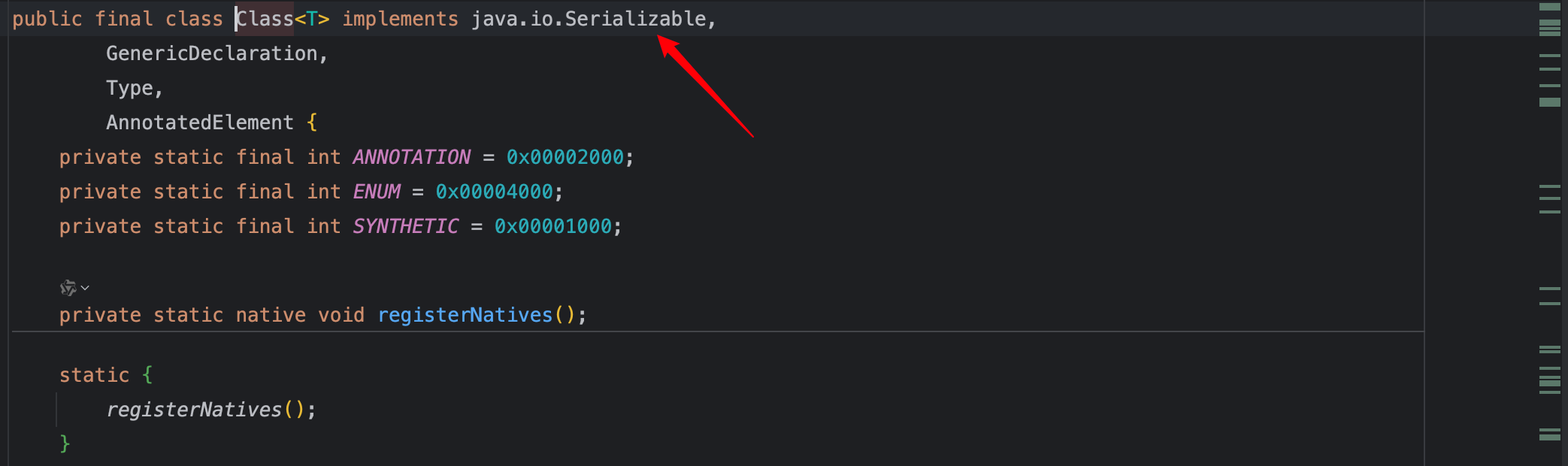 Runtime 类本身是不能被序列化的,因为该类没有实现 Serializable 接口,但是其我们可以通过获取该类的 Class 对象即可完成序列化。