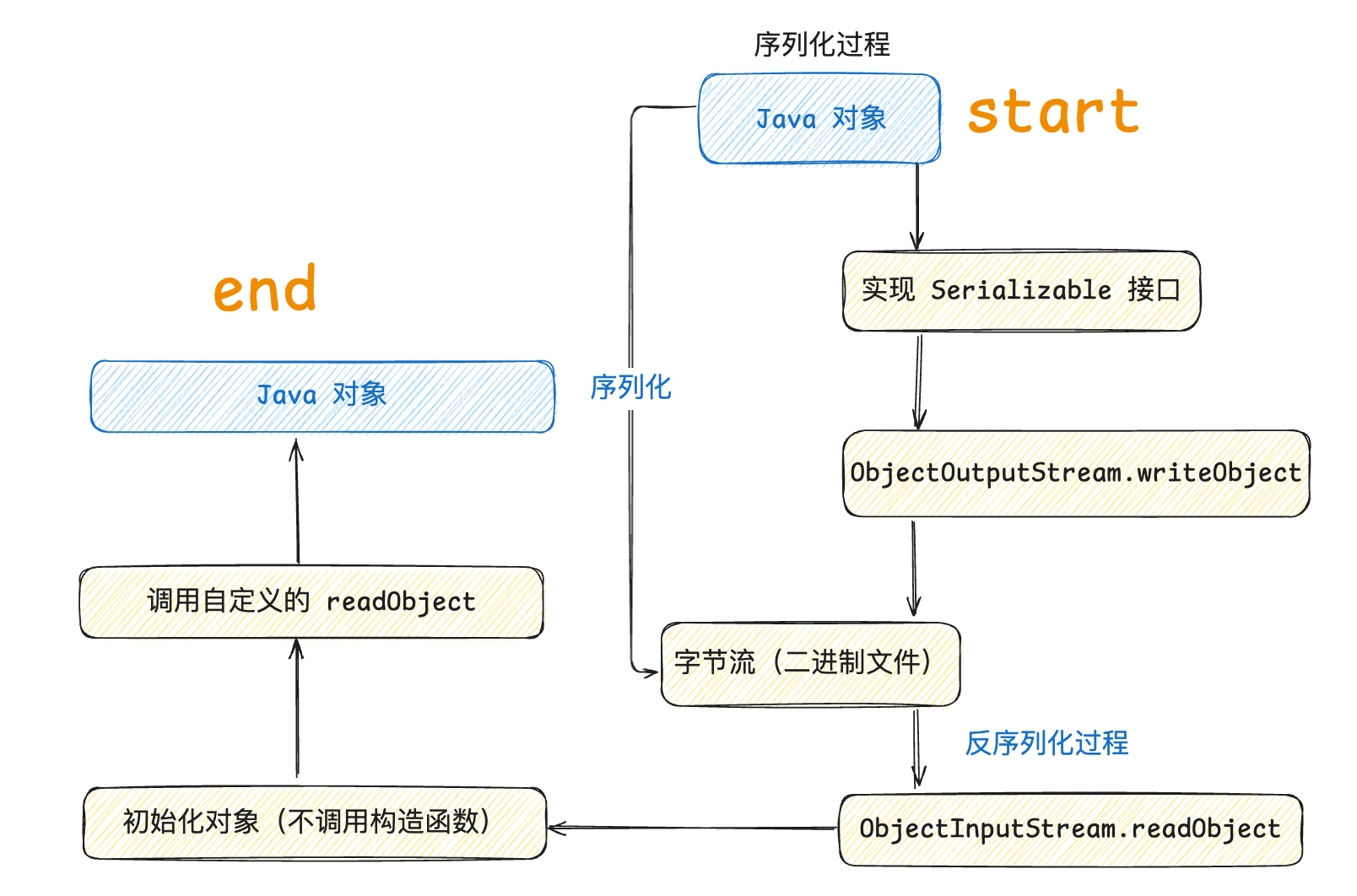 - Java 反序列化是指把字节序列恢复为 Java 对象的过程。