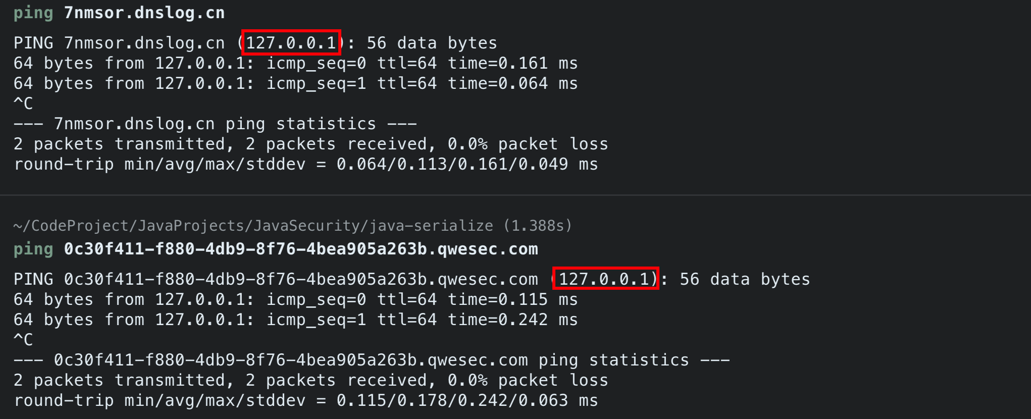 /** * <p>This instance of URLStreamHandler is used to avoid any DNS resolution while creating the URL instance. * DNS resolution is used for vulnerability detection. It is important not to probe the given URL prior * using the serialized object.</p> * * <b>Potential false negative:</b> * <p>If the DNS name is resolved first from the tester computer, the targeted server might get a cache hit on the * second resolution.</p> */ staticclassSilentURLStreamHandlerextendsURLStreamHandler {