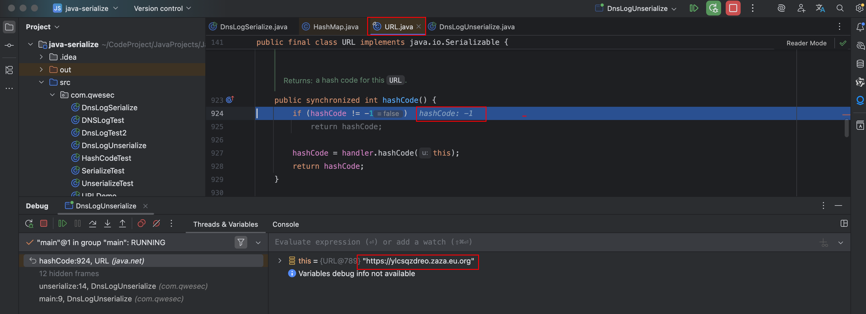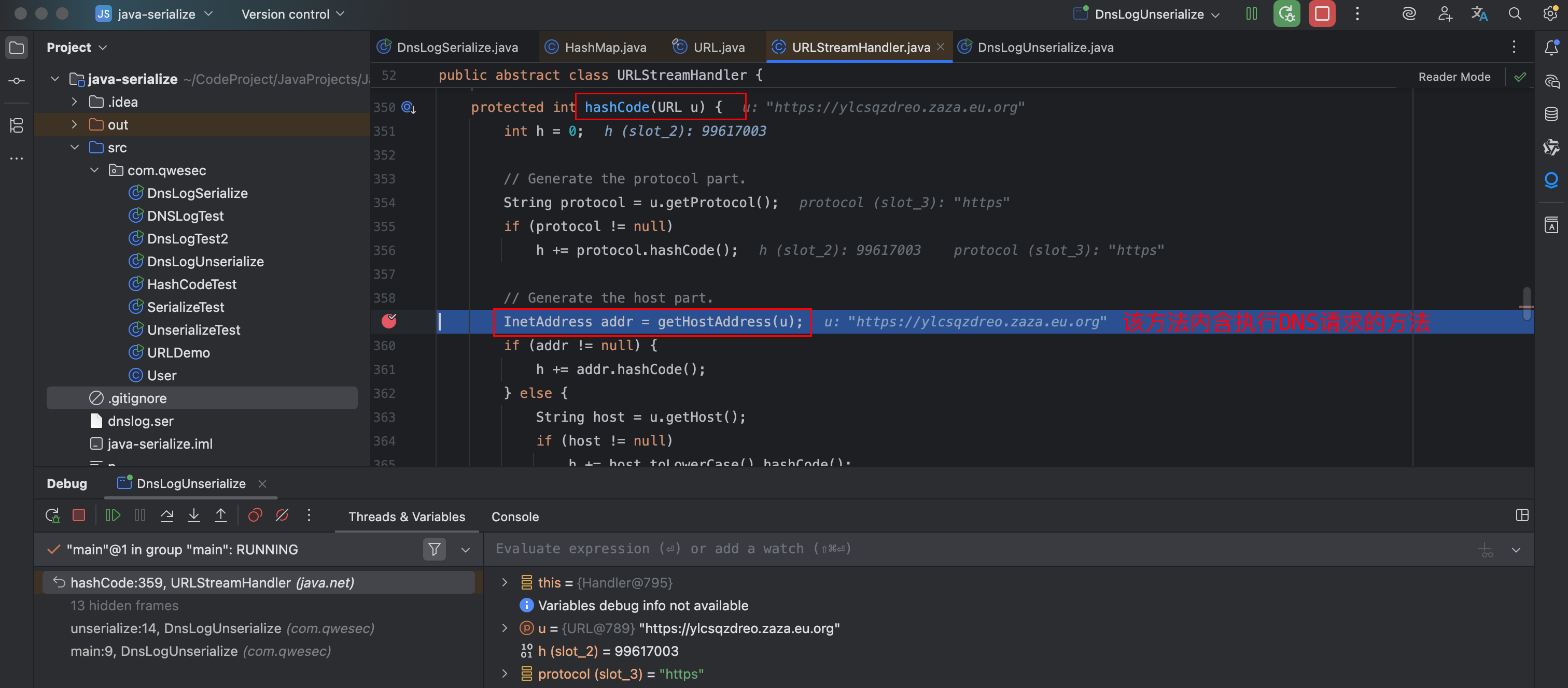 Reflections.setFieldValue(u, "hashCode", -1); // During the put above, the URL's hashCode is calculated and cached. This resets that so the next time hashCode is called a DNS lookup will be triggered.
